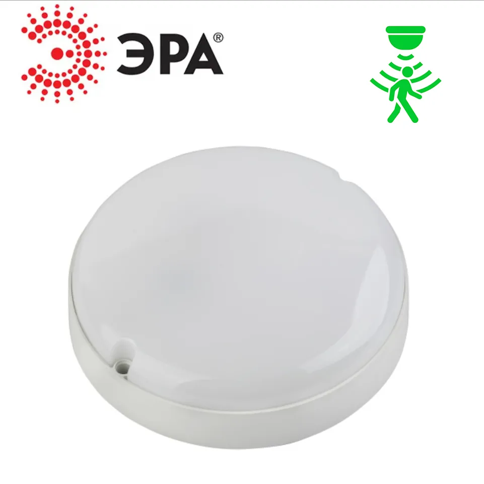 Пылевлагозащищённый LED-светильник IP65 круглой формы. Оснащён оптико-акустическим датчиком движения. В случае отсутствия какого-либо движения, свет гаснет. Если время задержки, 20-25 секунд, еще не истекло и зафиксировано движение, тогда начинается новый отсчет.