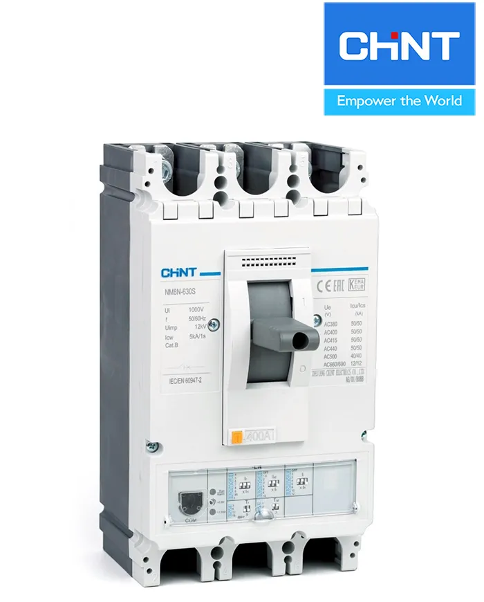 Модель NM8N-800S - это трёхполюсный автоматический выключатель с регулируемым термомагнитным расцепителем. Устройство предназначено для защиты силовых цепей и электрооборудования от токов короткого замыкания, повышенного или пониженного напряжения. Предельная отключающая способность автоматического выключателя составляет 50кА.