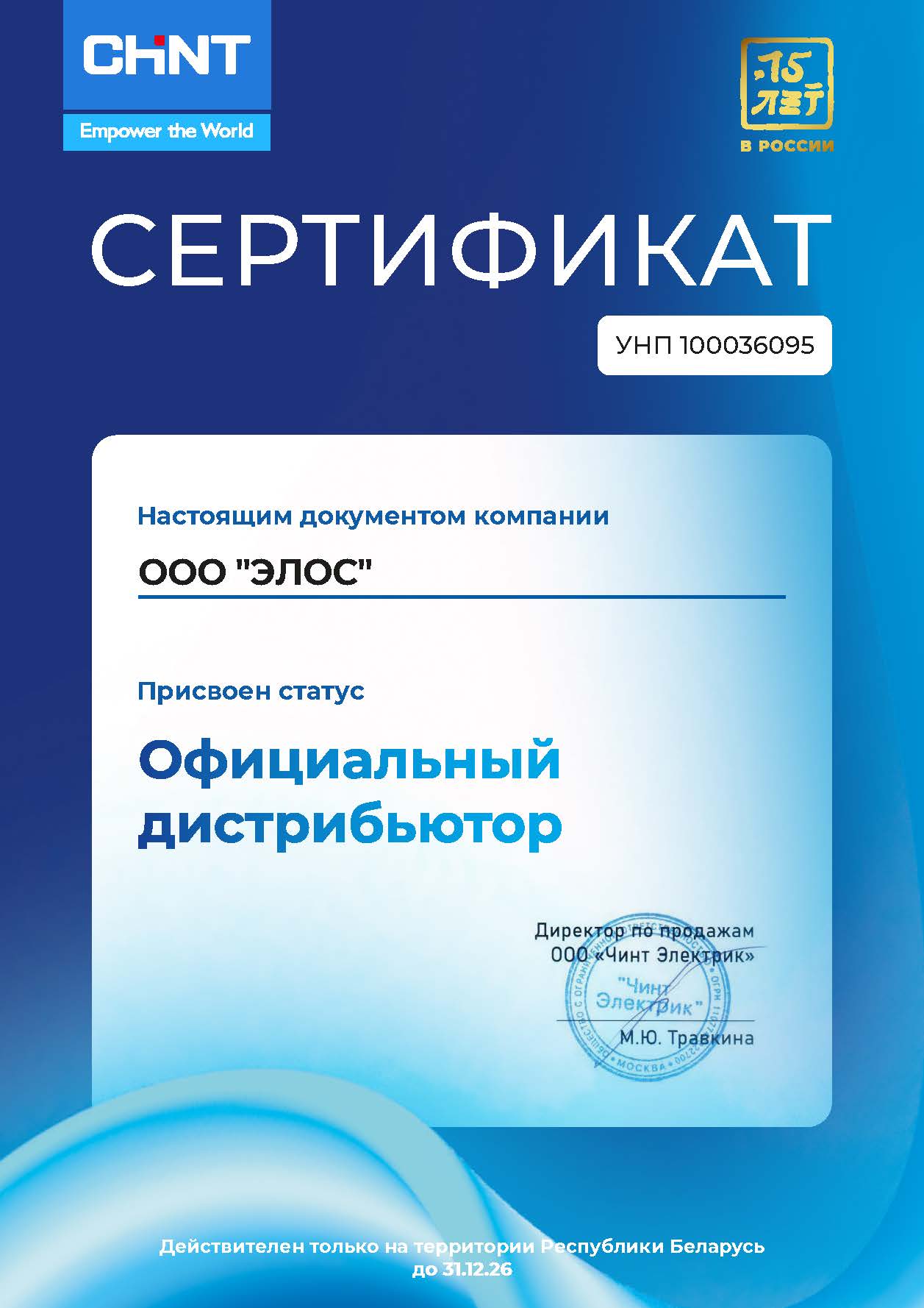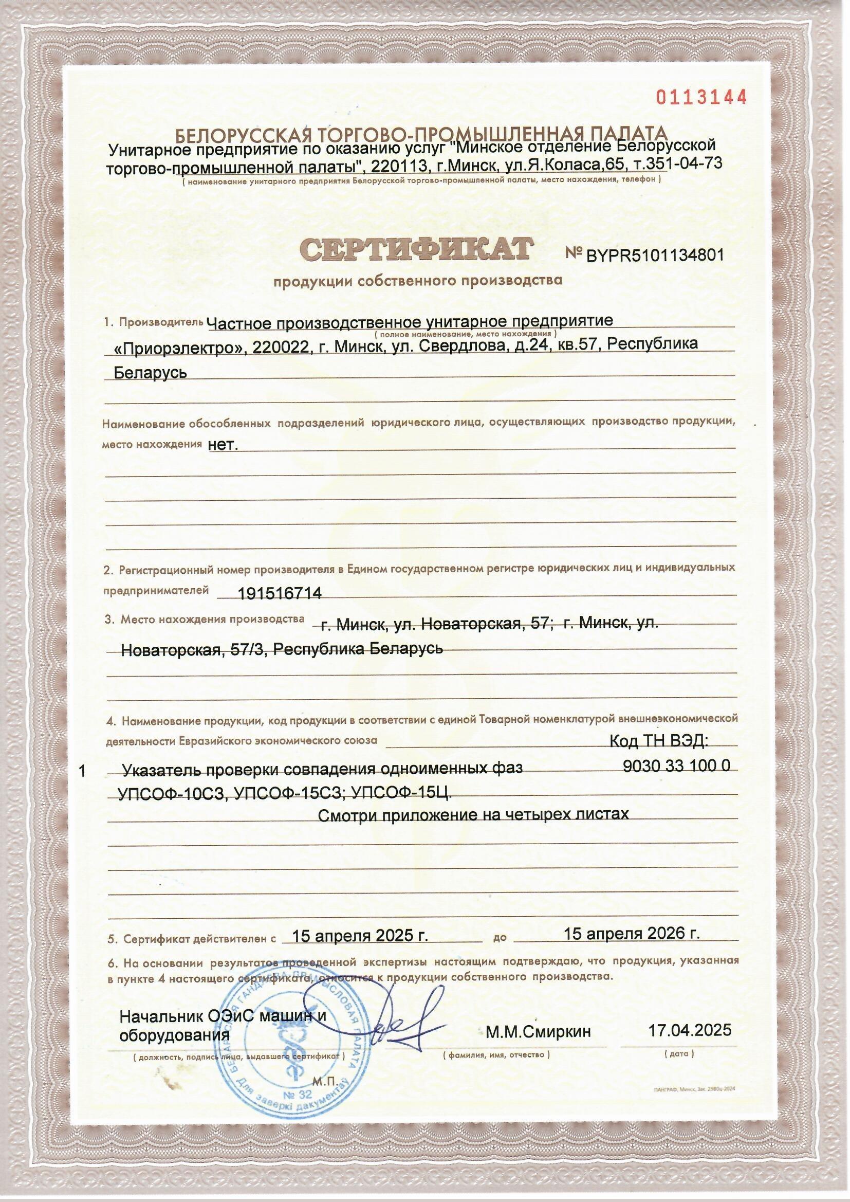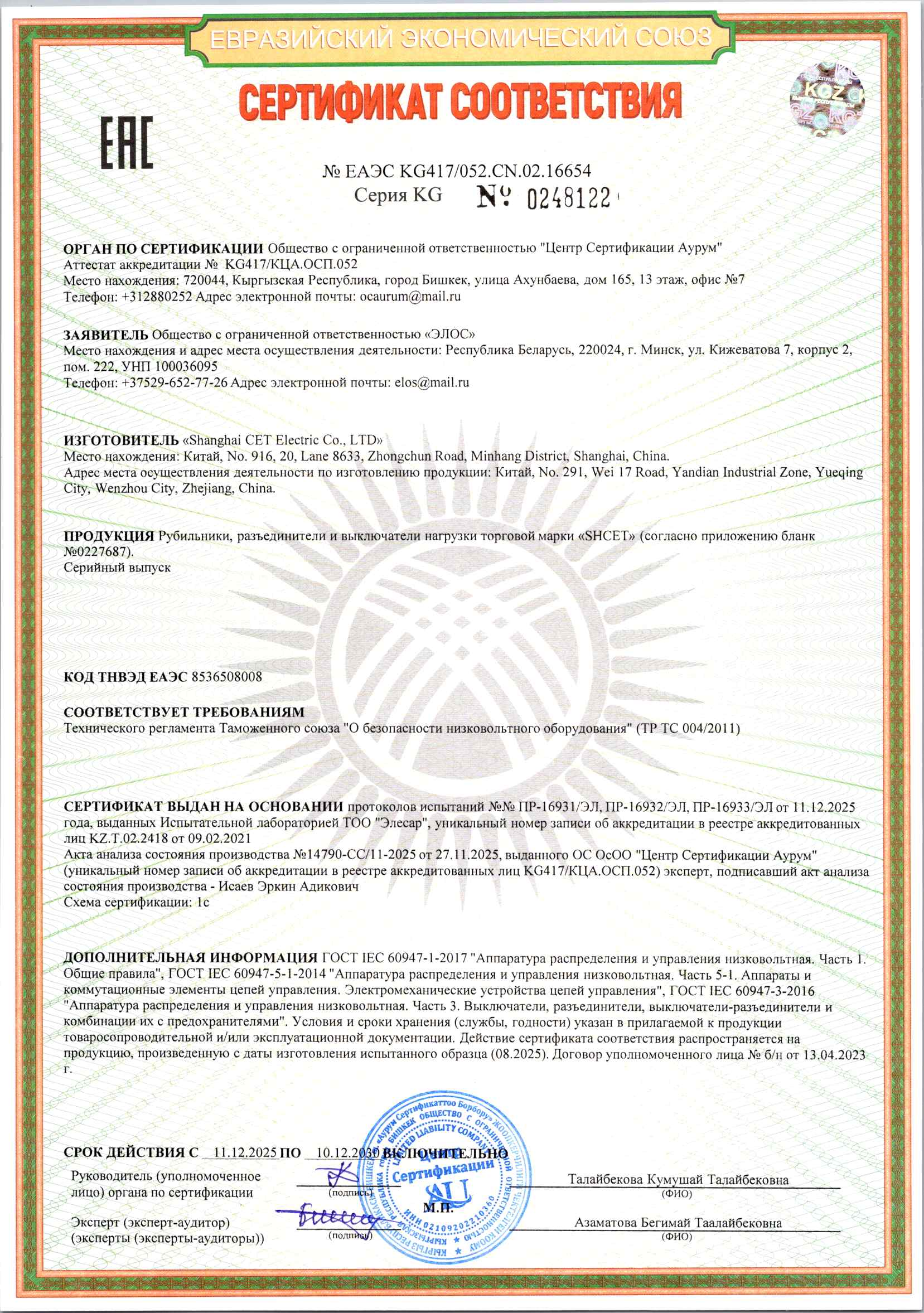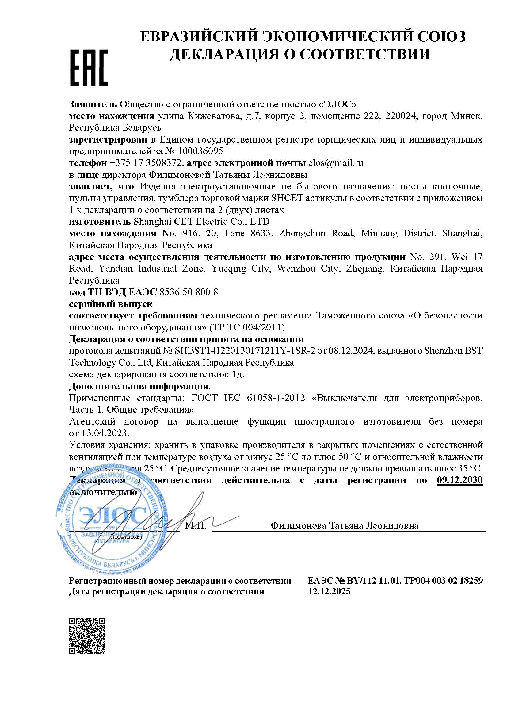 Сертификаты ООО "Элос"